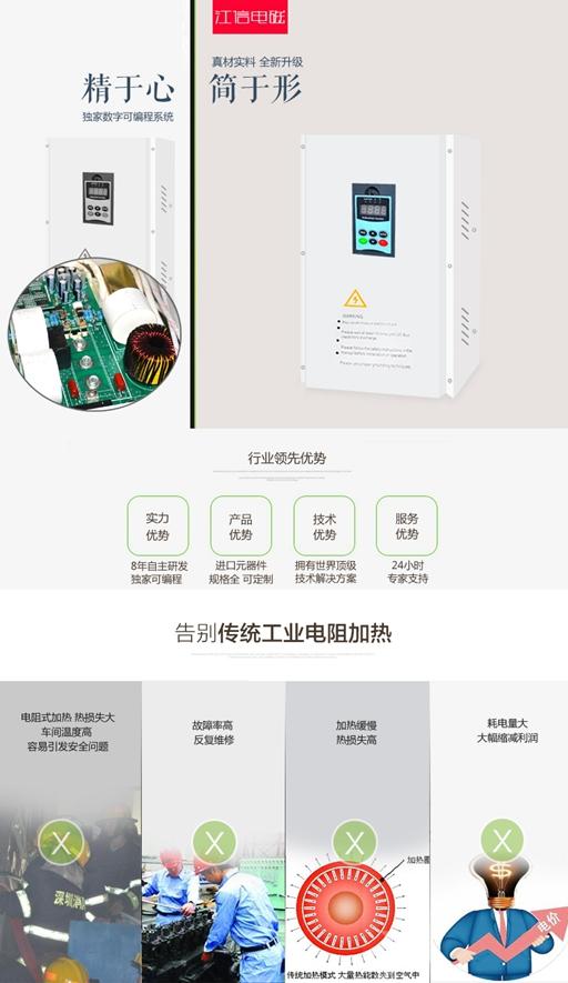 可見,經(jīng)濟發(fā)展要與環(huán)境保護同步,只有兩者的和諧,才能營造人類美好的家園。所以,我國宏偉目標的實現(xiàn)有賴于每個經(jīng)濟體的努力。要撐起國家的環(huán)保大計,更需要市場經(jīng)濟的中堅力量——民族企業(yè)的全力以赴。那么,作為工業(yè)加熱界的代表企業(yè)——江信電磁,它正用自己的行動為這個中國夢而努力。 ???? 2006年以前,周武江先生目睹工業(yè)加熱行業(yè)的鍋爐式加熱所產(chǎn)生的滾滾濃煙對大氣的污染,目睹電阻式加熱的大量耗能及高溫的生產(chǎn)環(huán)境,他就有了用綠色科技創(chuàng)新的想法。功夫不負有心人,經(jīng)過幾年的潛心鉆研,大膽創(chuàng)新,勇于實踐,他與他的科研團隊終于掌握了工業(yè)加熱的全新技術——工業(yè)電磁加熱的核心技術。于是江信電磁在2006年正式啟航,電磁加熱技術廣泛應用于塑料橡膠品、化工、醫(yī)藥、食品、能源、印刷、建筑型材等行業(yè)的加熱節(jié)電,江信電磁研發(fā)出的一系列高精度可編程電磁加熱產(chǎn)品也熱銷海內(nèi)外,為世界的節(jié)能減排做出了巨大的貢獻,為我國的許多大小企業(yè)節(jié)約了能源,降低了生產(chǎn)成本,提高了企業(yè)的競爭力。特別是江信電磁積極參與國家的“碧水藍天”項目,積極去推行節(jié)能減排、綠色環(huán)保的生產(chǎn)理念,用自己的實際行動去履行一個企業(yè)的責任,體現(xiàn)一個企業(yè)關愛環(huán)境,讓環(huán)境與經(jīng)濟同步協(xié)調(diào)發(fā)展的偉大情懷。 ???? 江信電磁董事長周武江先生深情地說:“身處任何時代,只有腳踏實地,勇于創(chuàng)新,才能撐起中國制造的未來。江信電磁一定會勇于承擔引領工業(yè)加熱行業(yè)發(fā)展的重任,不遺余力地為世界節(jié)能事業(yè)的發(fā)展、改善人類生活環(huán)境做出貢獻!” ?