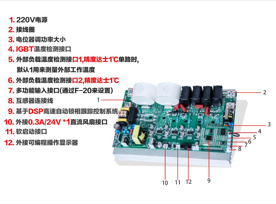 單相220V8kW電磁加熱器是采用高速驅動、全橋型結構、德國英飛凌IGBT變頻技術,可定制風冷、水冷結構,支持裸板(不帶外殼)出售,具有功率大,效率高的特點,適合不具三相電而獲得較大功率場合。廣泛應用于采暖、小型蒸汽、小型管道加熱中。
