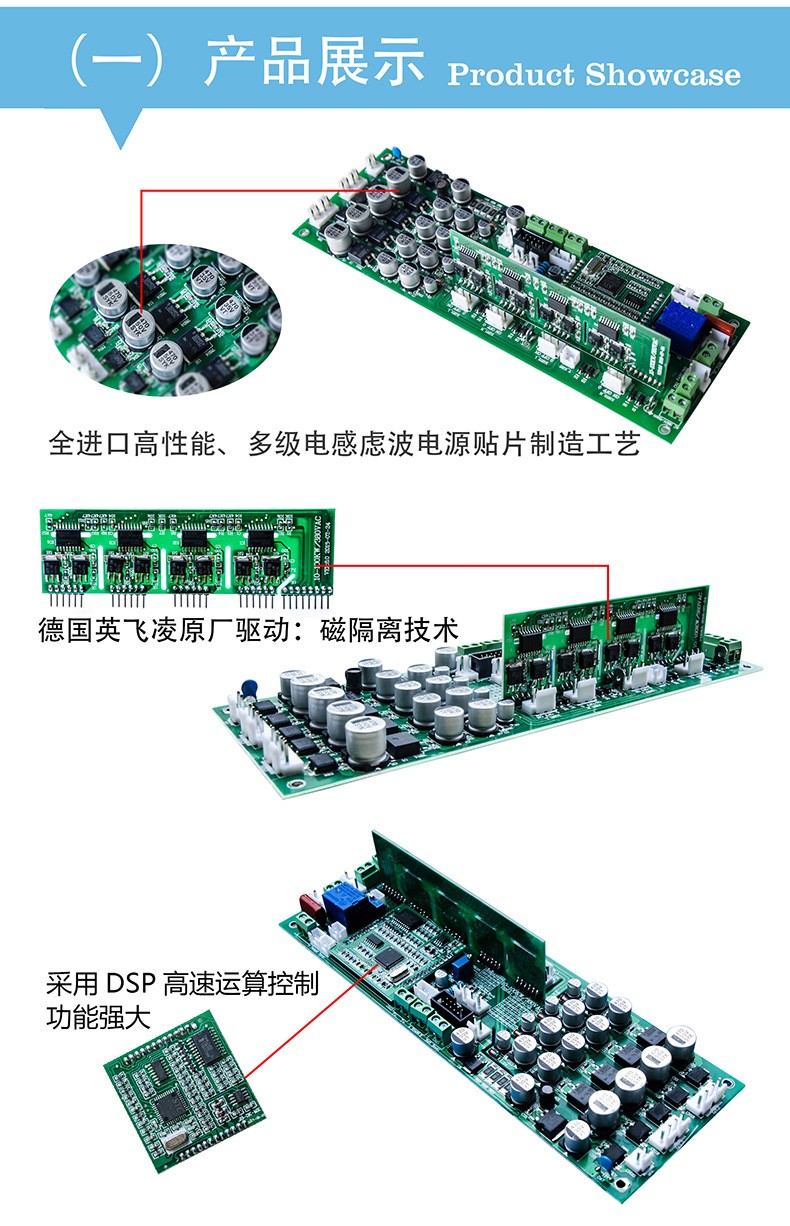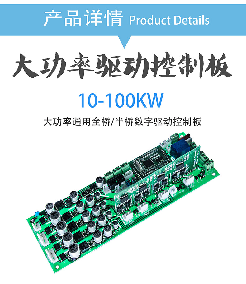 單相半橋1KW~10KW或三相全橋/半橋5KW~30KW電磁加熱驅動板,能應用于簡單的電磁加熱系統之中,也可配套自動化系統,并預留工業485總線與計算機鏈接通訊接口,滿足自動化控制中的接口需求。對于單相可應用于1~10KW電磁加熱驅動,最大可驅動150A/1200V IGBT。對于三相可應用于5~30KW全橋/半橋電磁加熱驅動,最大可驅動450A/1200V IGBT.集成了全數字核心控制器和IGBT驅動器,外部只加IGBT模塊、整流橋堆、諧振電容、散熱器等器件就可以組裝成高性能電磁感應加熱系統